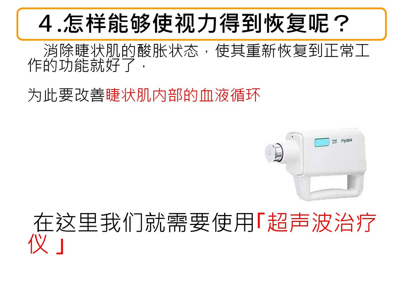 当店では超音波治療器"ミオピア"の簡単な取り扱い説明を中国語に翻訳しています。